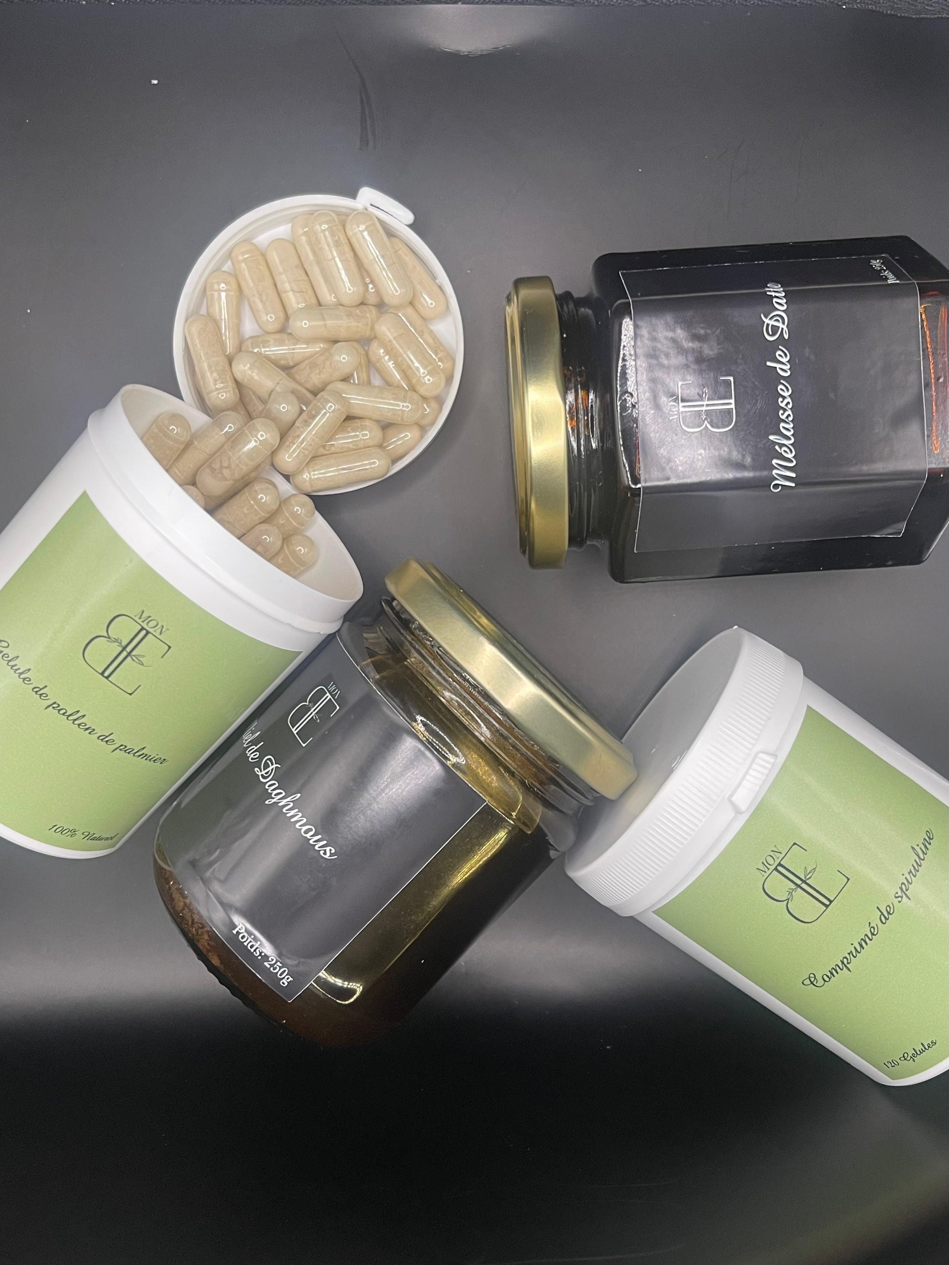 Notre pack spécial fertilité est là pour toi ! Composé de gélules de pollen de palmier, de miel de Daghmous, de spiruline et de mélasse de datte, chaque produit apporte ses propres bienfaits pour t’aider dans ton parcours.